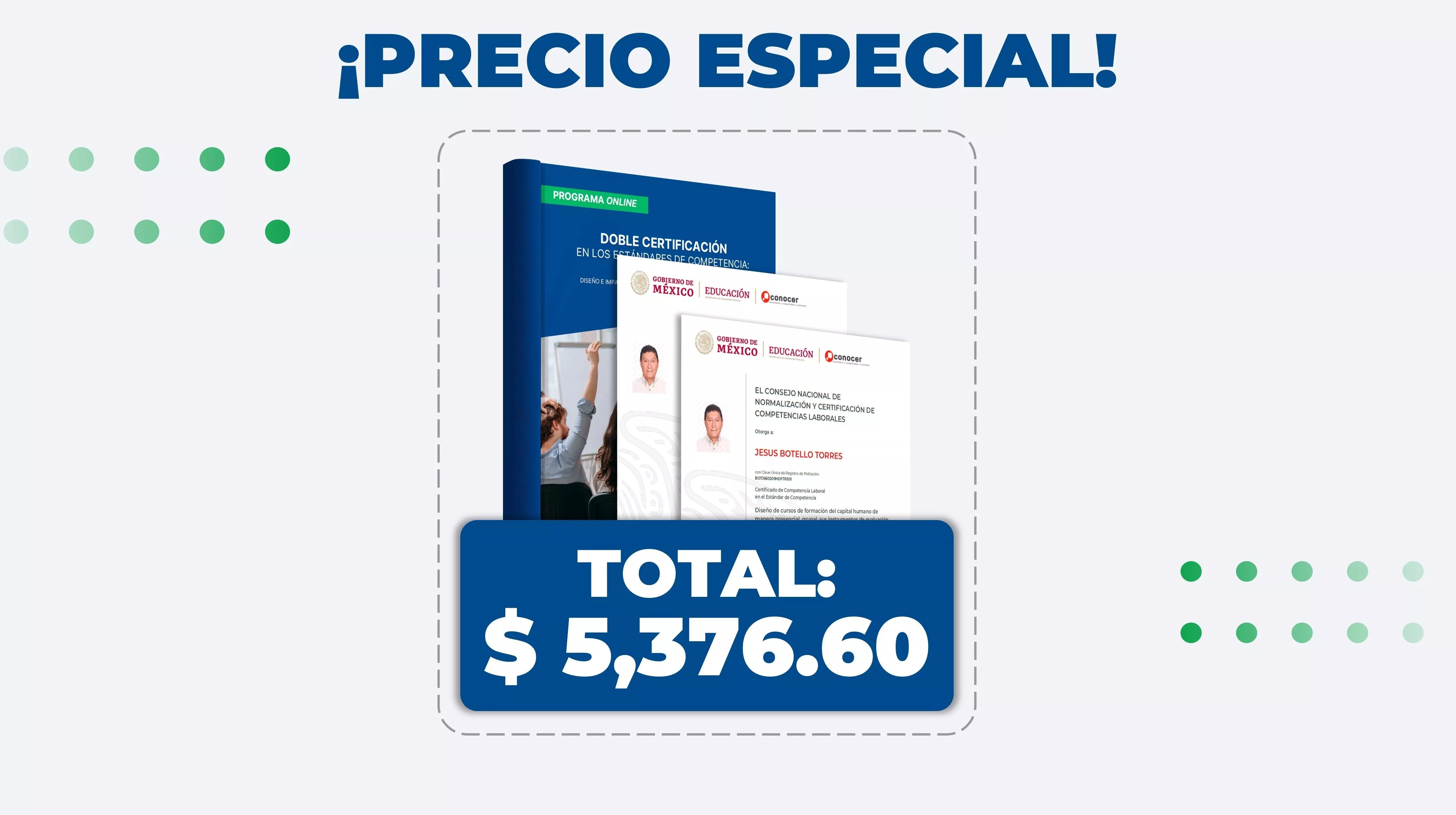 A través de esta doble certificación te acreditarás en los estándares de competencia: EC0301 “Diseño de cursos de formación de capital humano de manera presencial grupal, sus instrumentos de evaluación y manuales del curso” EC0217.01 “Impartición de cursos de formación del capital humano de manera presencial grupal”